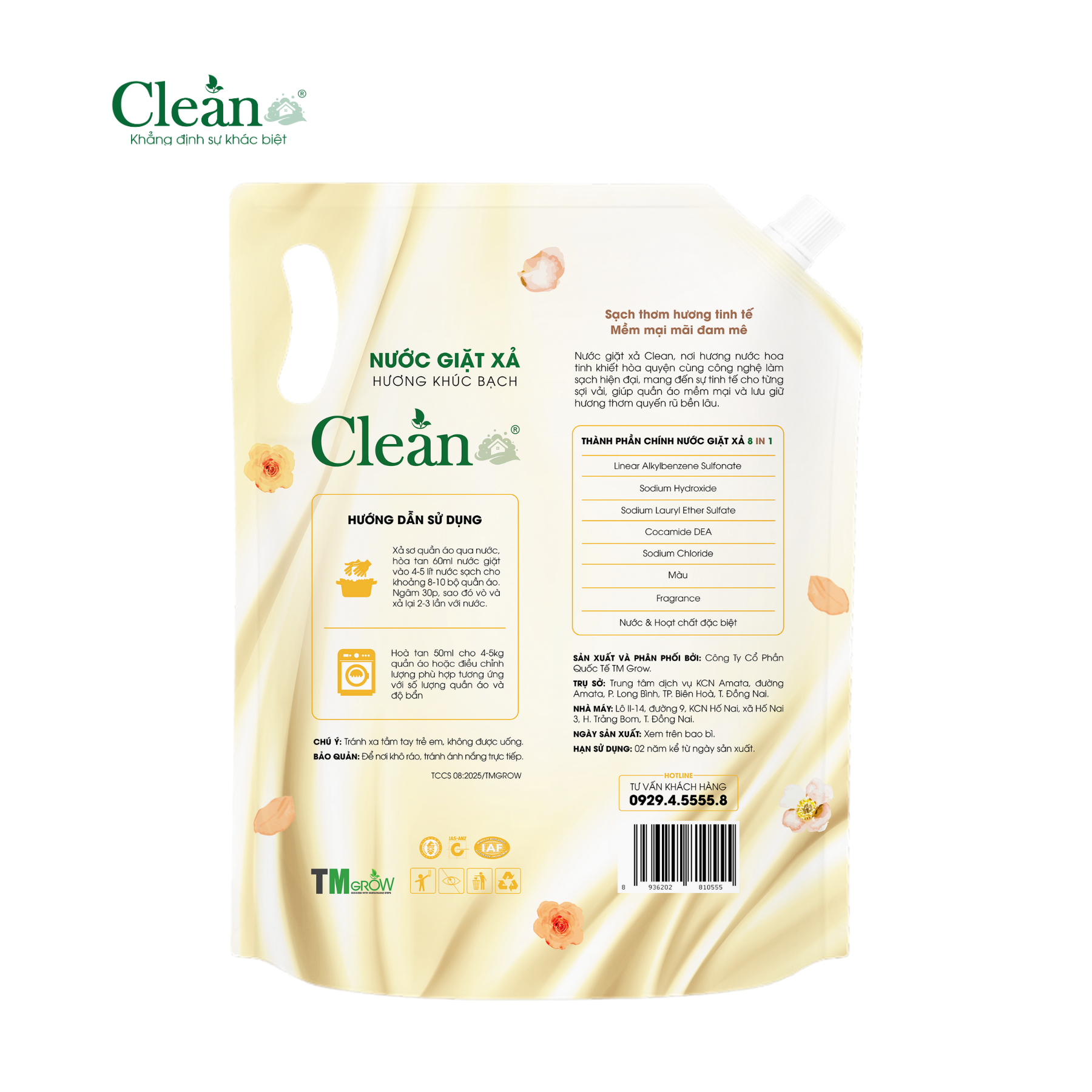 ***Nước giặt xả - Clean*** với công nghệ làm sạch hiện đại, giúp quần áo sạch sâu và bảo vệ từng sợi vải, kết hợp cùng hương nước hoa cao cấp, mang đến cảm giác tinh tế và thơm ngát dài lâu. Nước giặt xả - Clean không ảnh hưởng đến sức khỏe người dùng. Khi mua hàng chúng ta cần lưu ý tránh mua phải hàng giả hàng nhái. Việc này nhằm đảm bảo không ảnh hưởng đến sức khỏe.