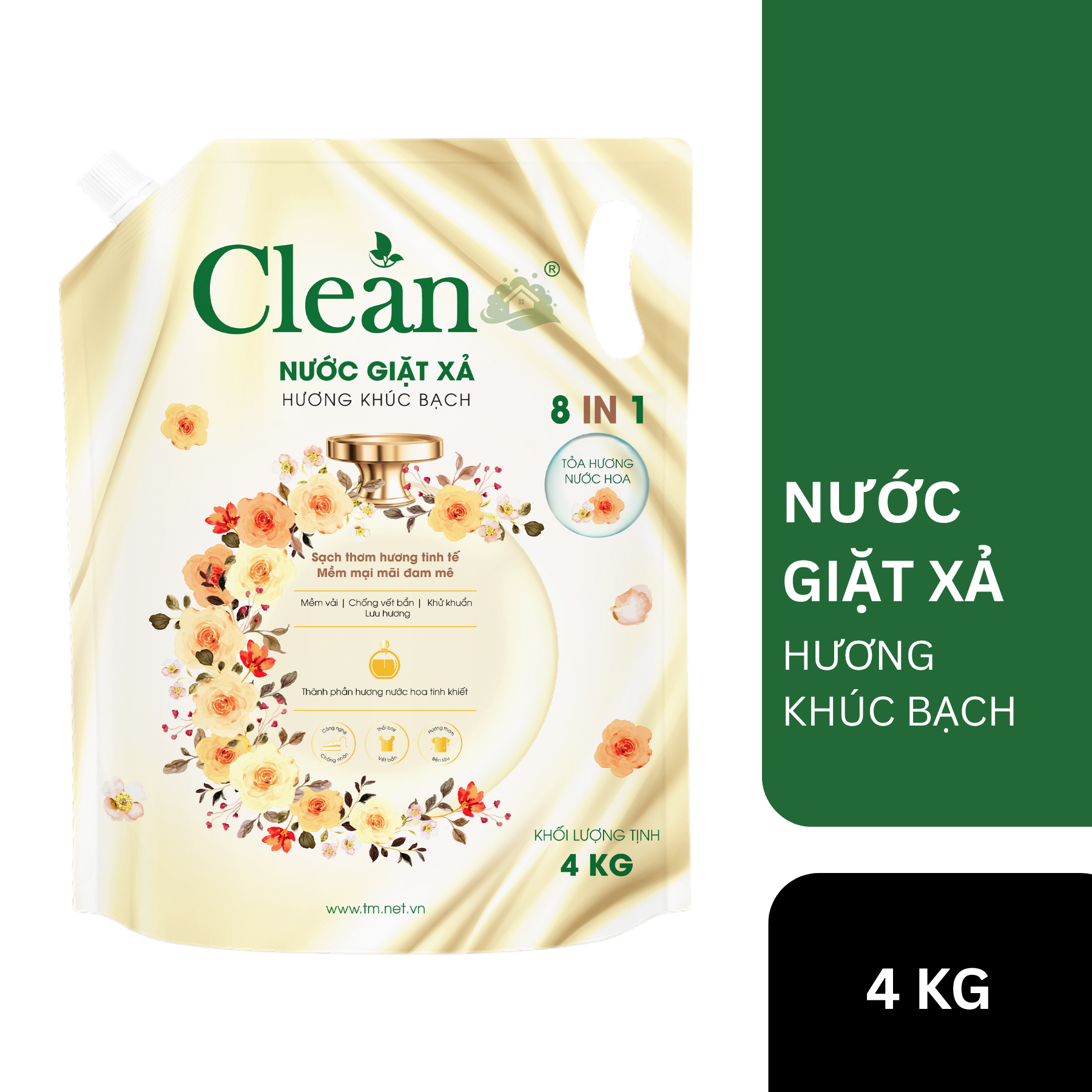 Nước giặt xả Clean với công nghệ làm sạch hiện đại, giúp quần áo sạch sâu và bảo vệ từng sợi vải, kết hợp cùng hương nước hoa cao cấp, mang đến cảm giác tinh tế và thơm ngắt dài lâu. |
