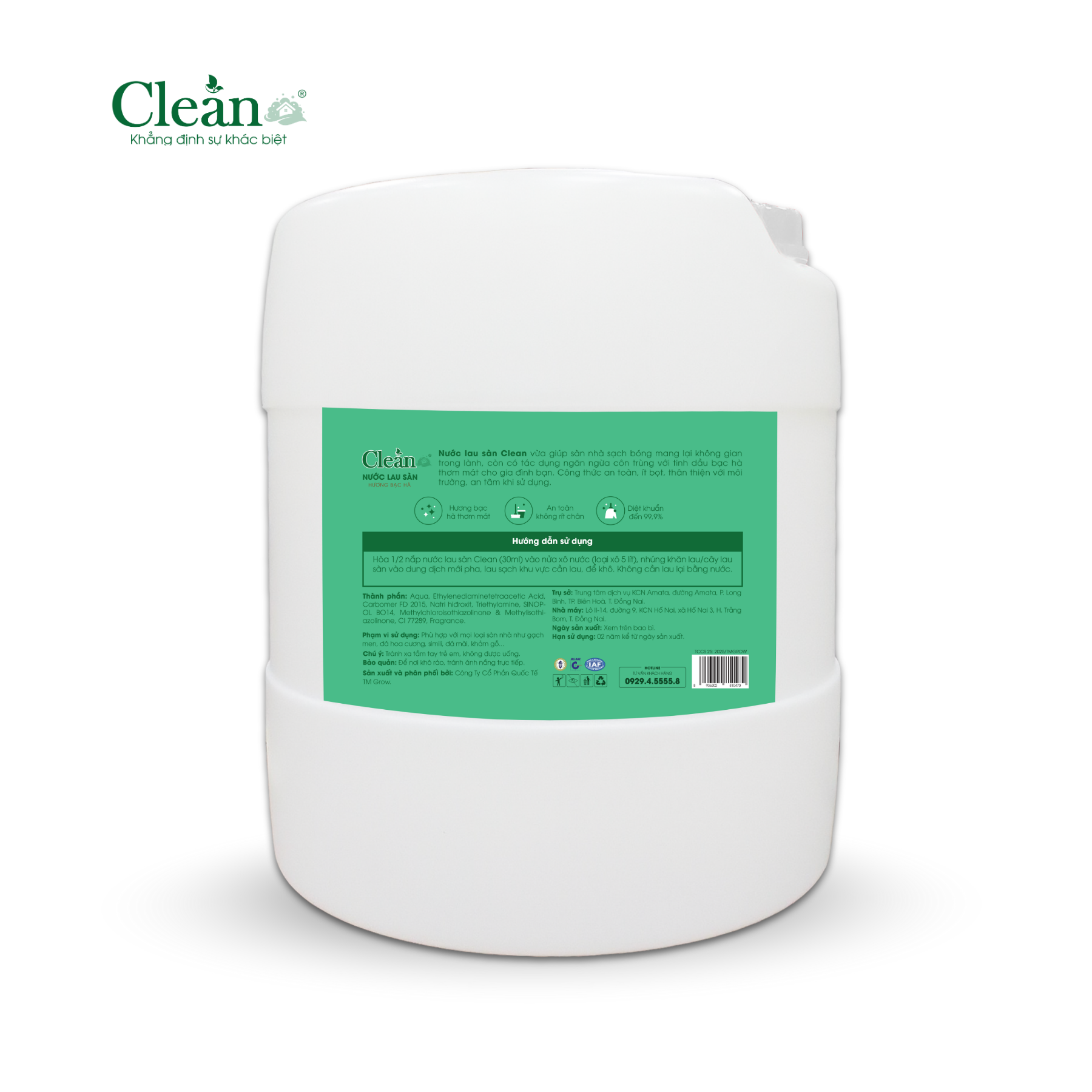 Nước lau sàn - Clean là dung dịch vệ sinh sàn nhà và các bề mặt khác. Khi sử dụng bạn sẽ hòa nước lau sàn cùng với nước để loại bỏ các vết bẩn và mùi hôi trên các loại sàn như nhựa vinyl, gỗ, đá, gạch men,... Bên cạnh khả năng làm sạch sàn nhà, nước lau sàn còn giúp loại bỏ mùi hôi vô cùng hiệu quả.